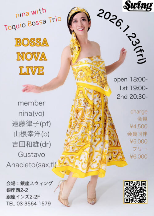 [出演]nina(vo) 遠藤律子(p) 山根幸洋(b) 吉田和雄(ds) Gustavo Anacleto(sax,fl)